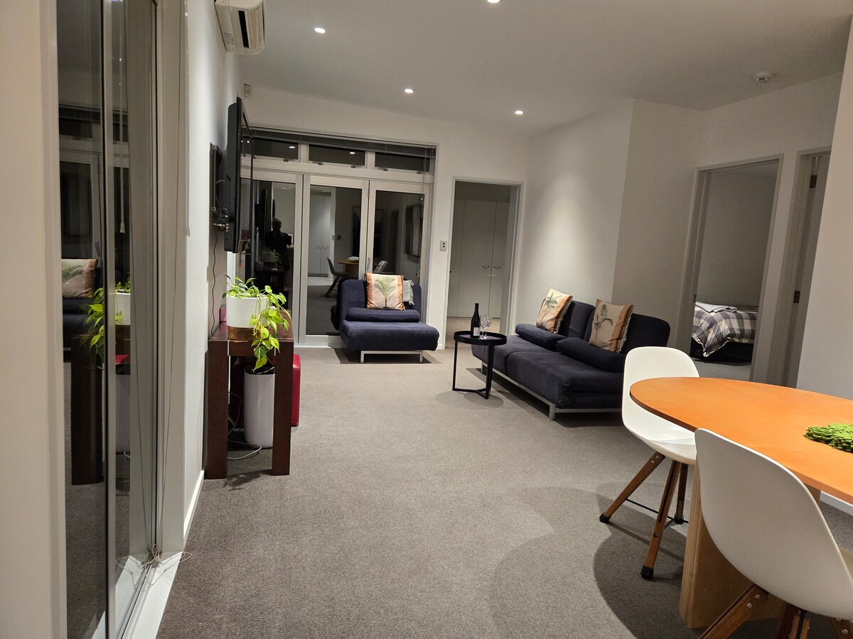 Our flat is close to Pioneer Stadium, rugby stadium, Addington Raceway, and Wolfbrook Arena. It is a 5-min walk to Barrington Mall. The train station is also 5 mins away by car. It is also a 5 min walk to catch the public bus from Barrington to Malls, and the city. The flat is at the back of the house and therefore private - you can consider it a home away from home. The Flat is homely and by no means 'flash'. But it is warm, comfortable and a place that you can feel at home in.
