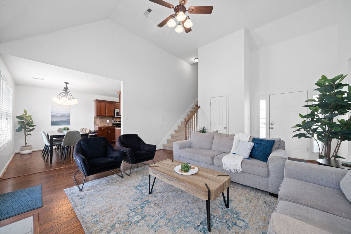 Esta casa de 3 dormitorios y 2,5 baños está equipada con una cocina completa, TV inteligente de 50pulgadas en la sala de estar y sala adicional, un patio al aire libre con asientos, garaje para 2 coches y lavadora/secadora en la unidad. Este espacio es perfecto para familias o grupos medianos. ¡Esperamos poder servirte!