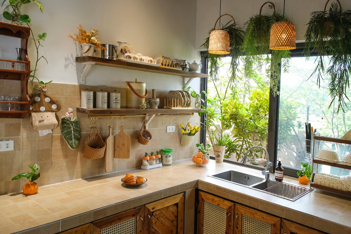 The house features 3 bedrooms with 4 beds, offering both privacy and connection which perfect for a family or a small group of friends. Each bedroom is filled with natural light, with soft 100% cotton bedding, and opens out to a lush green garden where you can listen to the wind, watch the trees sway, and truly let your mind rest.