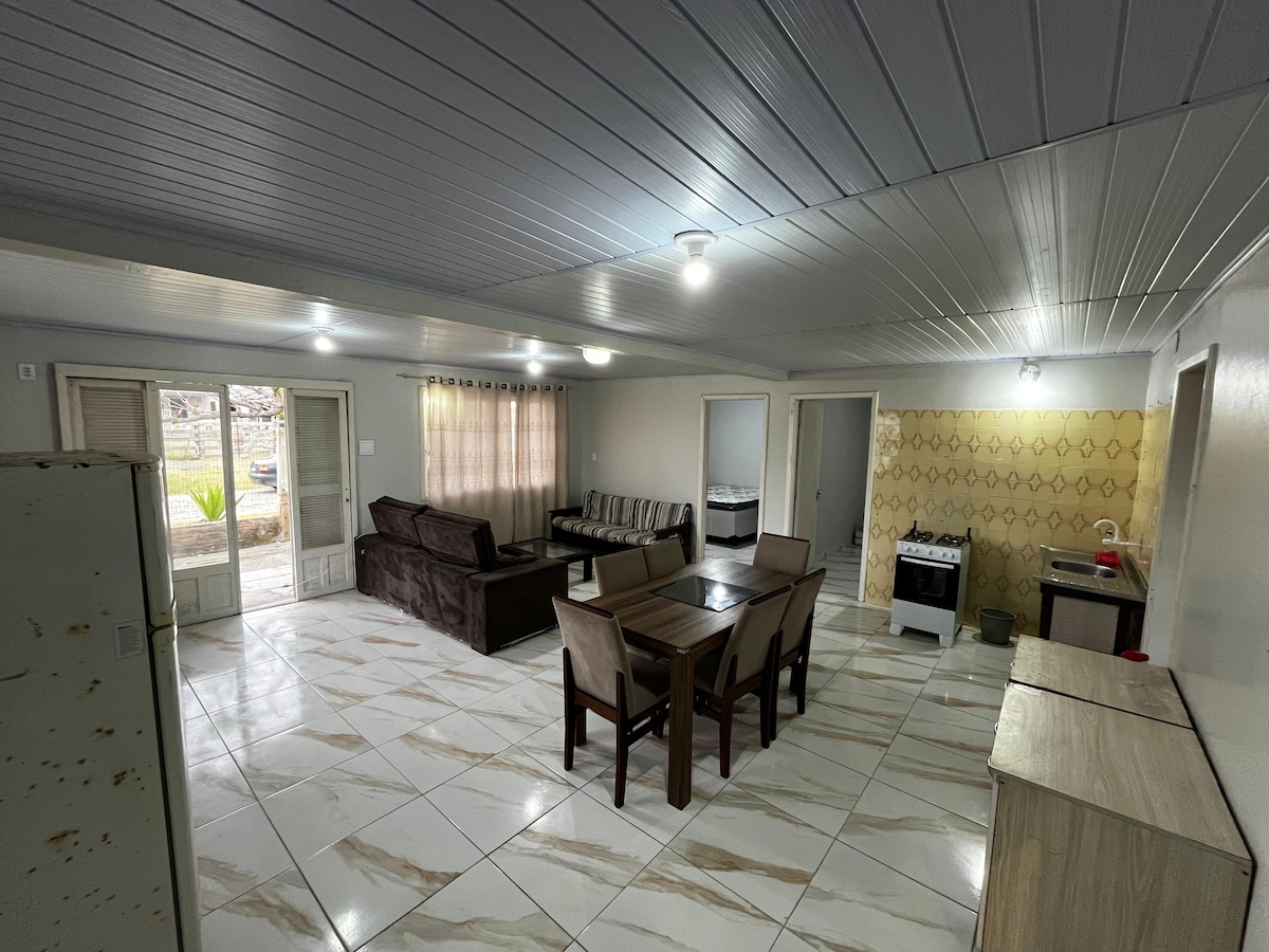 Linda Casa situada justo en el centro de Cidreira, a una cuadra del mar. 2 dormitorios, sala, cocina, 2 baños, garaje para 2 coches con parrilla, patio enorme, ¡tiene una cancha de voleibol para divertirse!