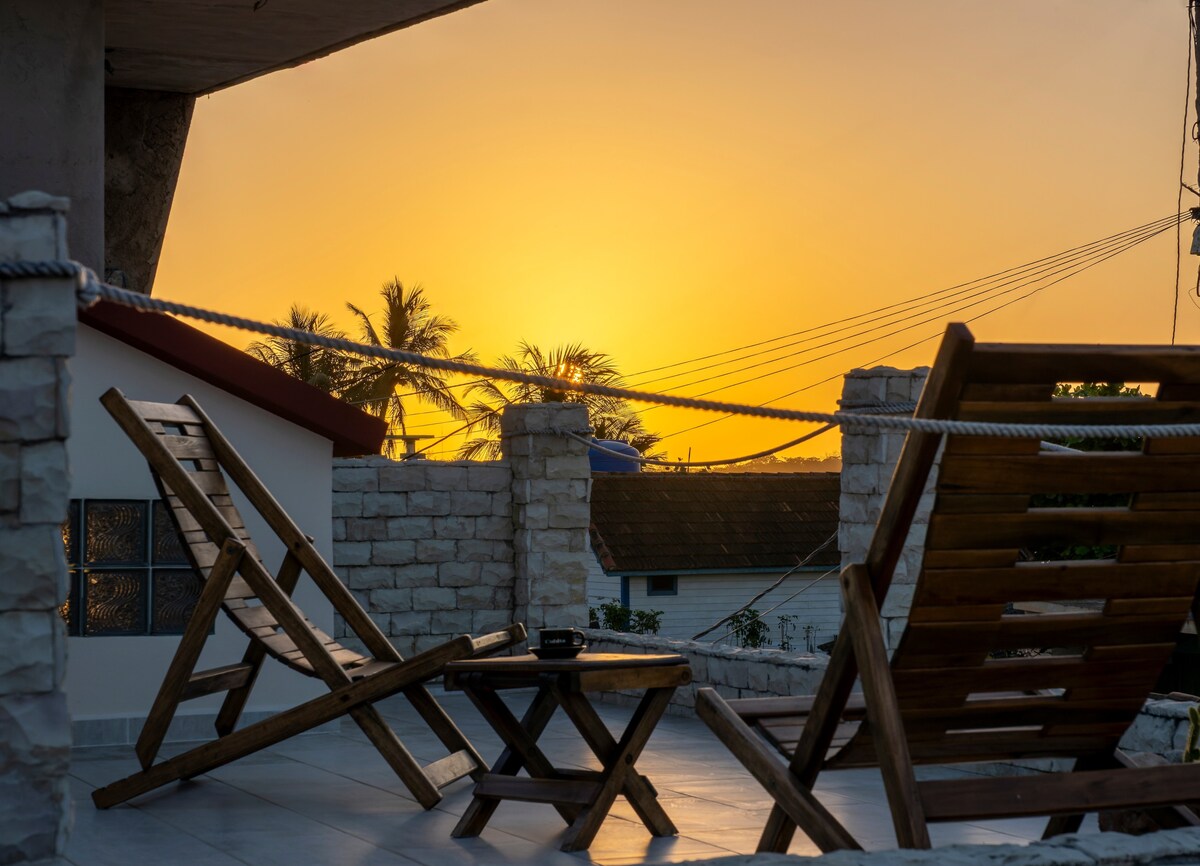 Hostal Buena Vista Ubicado en Playa Larga, barrio de Buenaventura y las orillas del toda la playa. Casa Independiente totalmente para los huéspedes. Su Terraza especial frente al mar, bancos tumbonas y atardecer espectaculares para sus Vacaciones.