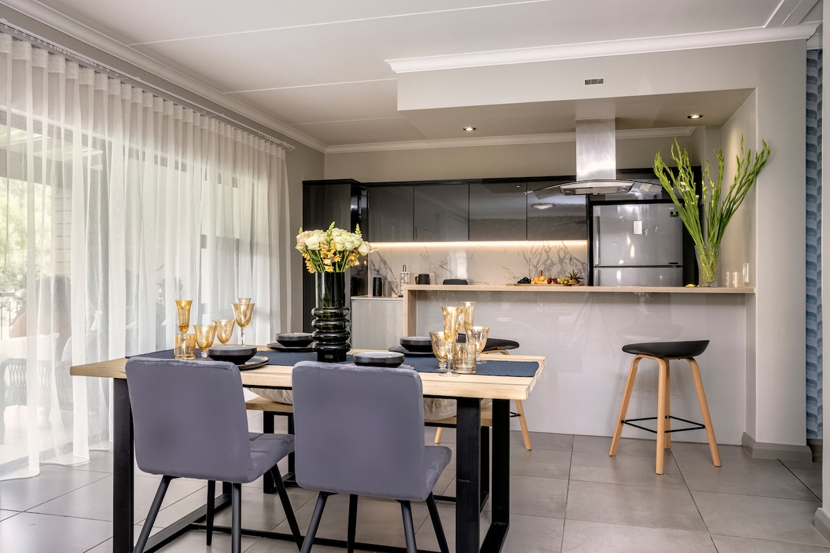 Descubre la serenidad en nuestro departamento único de Airbnb, un oasis tranquilo en el corazón de la ciudad. Este espacio cuidadosamente seleccionado combina la estética moderna con una comodidad acogedora y ofrece un refugio tranquilo para tu estadía. Los huéspedes apreciarán la decoración de inspiración zen, el bonito balcón con vistas panorámicas y una lujosa cama tamaño king para la máxima relajación. Las exuberantes plantas de interior agregan un toque de naturaleza, creando un ambiente relajante en todas partes. Con servicios de primera categoría y una ubicación céntrica, cerca del aeropuerto OR Tambo