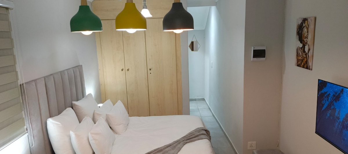 Este encantador apartamento es el lugar perfecto para relajarse después de un día en Johannesburgo, en Gauteng. El apartamento se encuentra en un barrio residencial tranquilo y seguro, a poca distancia en coche de Greenstone, Stoneridge y The Neighbourhood Square en Linksfield. Estamos a 10 minutos del aeropuerto internacional OR Tambo. El apartamento tiene una amplia sala de estar con un cómodo sofá, comedor y cocina americana. El dormitorio tiene una cama tamaño queen y baño privado, también con patio y estanque de peces.