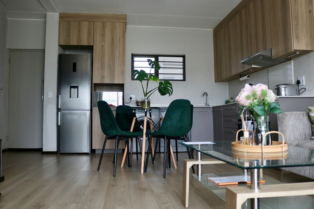 Bienvenido a este espacioso y cómodo apartamento de dos dormitorios, con camas tamaño queen, ducha y bañera. El complejo es seguro, apto para niños e incluye piscina y parque infantil. Situado en el corazón de la zona de Fourways, está cerca de Chartwell Corner, Broadacres Shopping Center, Cedar Square, Pineslopes Shopping Center, Fourways Mall y Monte Casino. Disfruta de restaurantes cercanos, pubs para la vida nocturna y tiendas.