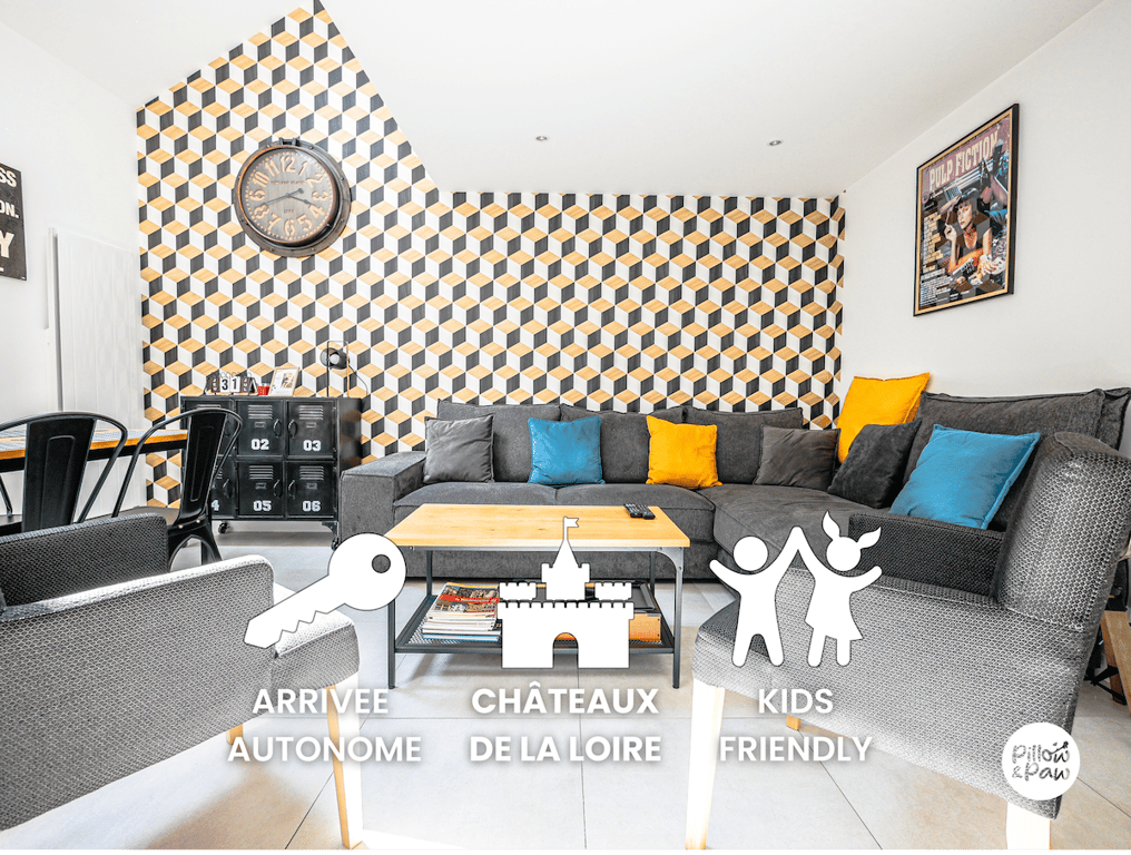 Gîte "Ô Charmant Buissonnet" Bienvenue dans notre Gite de charme 3 étoiles, authentique et élégant, de plain-pied Logement de 55m² indépendant dans notre longère, construction traditionnelle rénovée Au calme, avec jardin privatif clos. A 5 min en voiture des commodités. Pas de vis-à-vis, gîte aux murs épais non-mitoyens, bien équipé, et avec une décoration plaisante… On s’y sent bien ! A85 = 5min A10 = 15 min Tours Centre = 20 min Cinq "grands châteaux" < 30 min Borne privée VE 7.4 kW