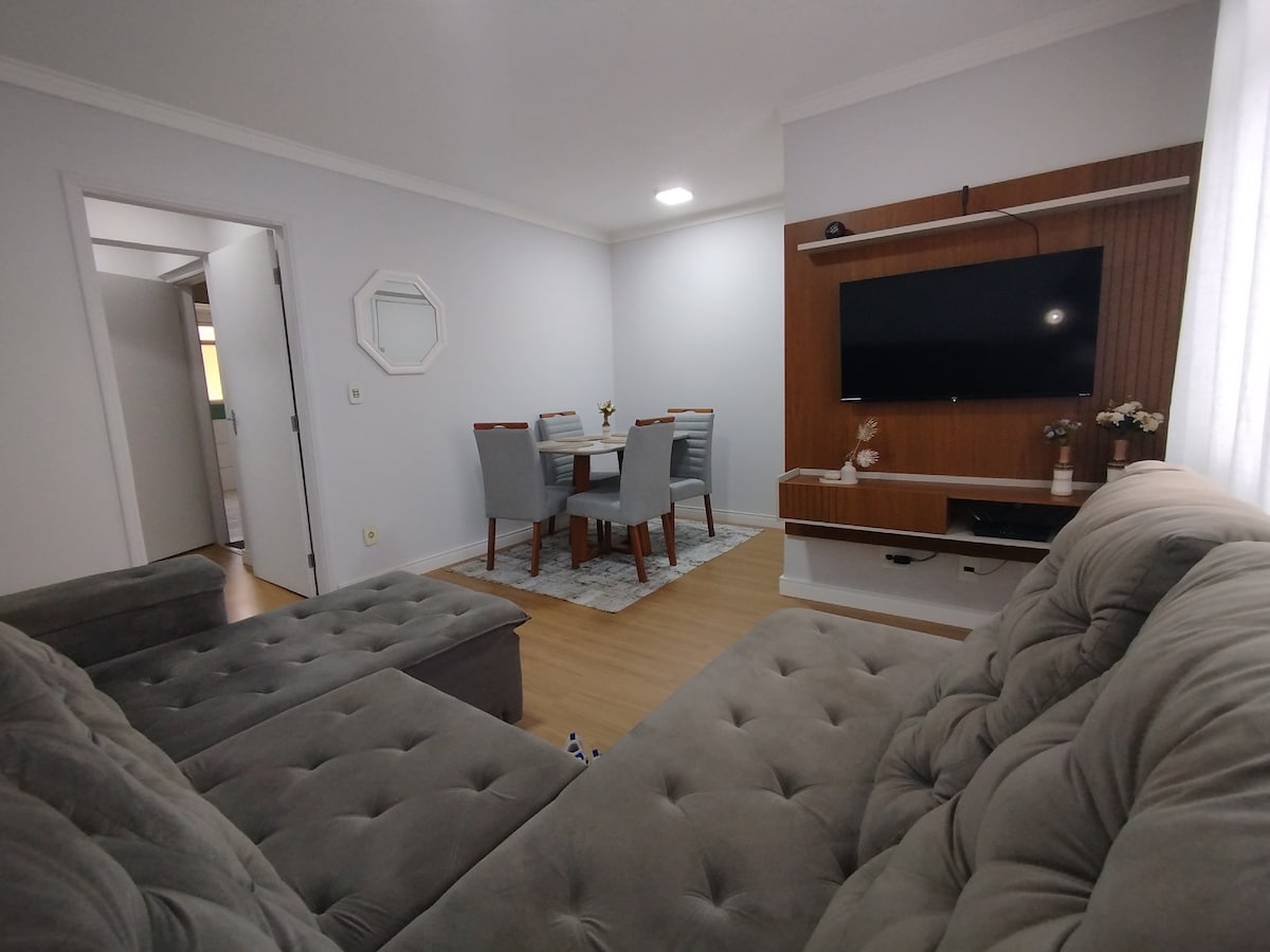 O grupo terá fácil acesso a tudo o que precisar neste lugar com excelente localização. Espaço amplo com tv de 60 polegadas e wi-fi. cozinha completa, onde vc poderá fazer suas refeições. A acomodação tem um quarto com cama de casal e segundo com duas camas de solteiro , além de um colchão extra, caso seja necessário acomodar 5 pessoas. O espaço e privativo , em bairro tranquilo com restaurantes em bares e lanchonetes próximos. Excelente para quem vem a trabalho ou a lazer.