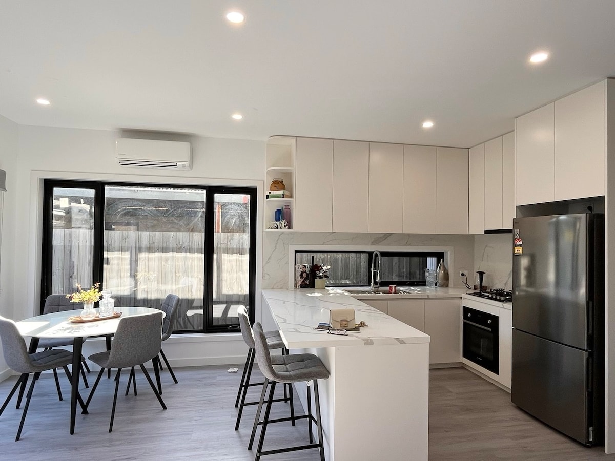 Situada en una calle tranquila, esta casa adosada de nueva construcción se encuentra en la parte delantera de un bloque de tres viviendas, lo que promete aislamiento, comodidad y conveniencia. Cuenta con una cocina abierta y espaciosa y una sala de estar impregnada de luz natural. Con una cocina bien equipada, 2 baños, terraza al aire libre y aparcamiento seguro en el garaje. Esta casa adosada ofrece una experiencia única para probar algunos de los mejores restaurantes asiáticos auténticos de Melbourne. 🍜