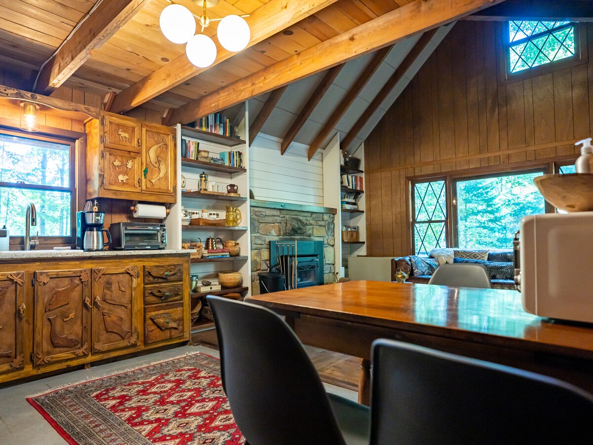 NEW Hot tub added! This little A-frame is a mid century dream nestled among the trees in the Pocono Mountains of Northeastern Pennsylvania and is within a few minutes walk to the lake. Beautifully and loving curated, filled with mid- century furniture, lots of art, books and records. A highlight of the cabin is the upstairs bathroom, featured in Condé Nast, Houzz and West Elm, it's a Pinterest dream come true. Come take a soak in our beautiful soaker tub among the trees. 2 hours from NYC.