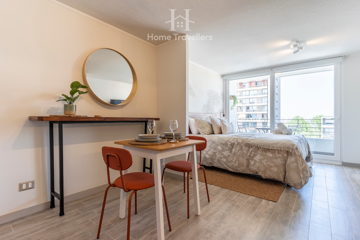 Descubre un encantador estudio moderno en una ubicación privilegiada en el centro de Santiago, ideal para parejas o viajeros que buscan confort y conveniencia. Cuenta con una cómoda cama matrimonial, cocina completamente equipada, baño moderno y una acogedora terraza perfecta para relajarte disfrutando de vistas urbanas. A pocos pasos de restaurantes populares, transporte público y las principales atracciones turísticas. ¡Reserva ahora y vive la mejor experiencia urbana en Santiago!