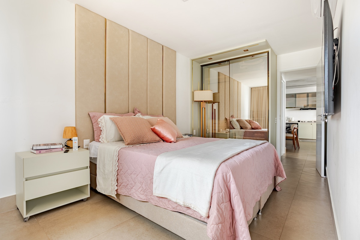 Agradable apartamento, con bañera de hidromasaje en el interior, total privacidad. En las zonas comunes, tenemos una piscina infinita, con una hermosa vista de la ciudad, jacuzzi, sauna, mirador, sala de juegos y sala de juguetes. Tenemos un centro comercial, con cafeterías, restaurantes y otros. Ubicación privilegiada, cerca del centro comercial, con un excelente polo gastronómico, junto al parque y con fácil acceso al aeropuerto, bares y restaurantes.