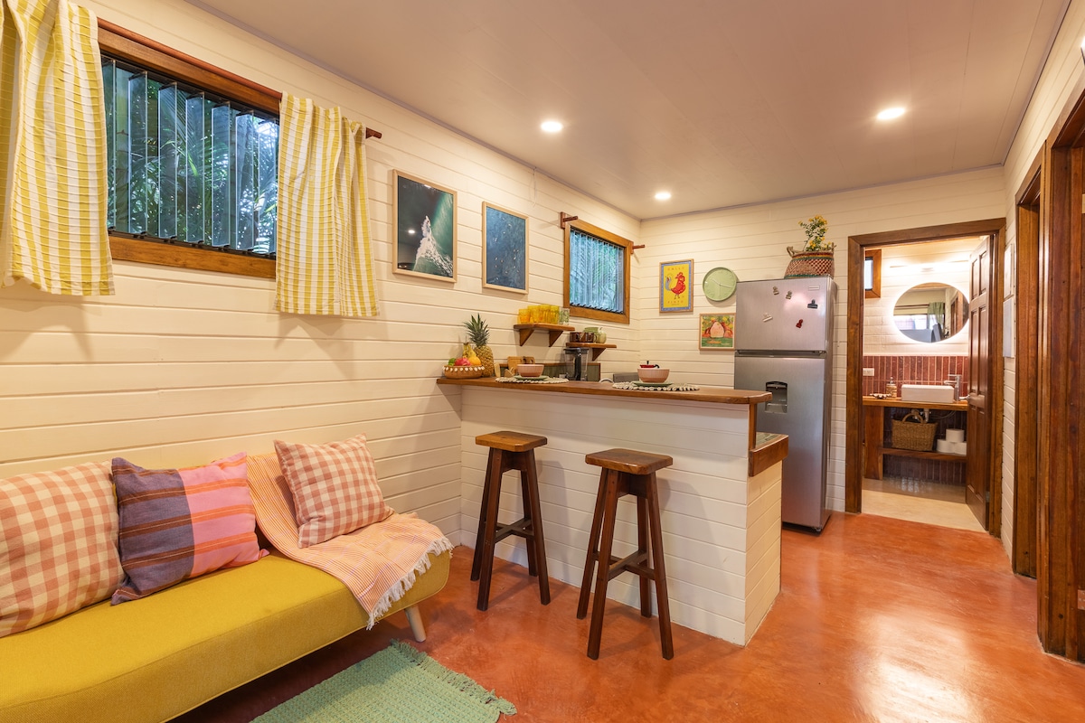 Ocean, forest, and garden views stretch from every window and door of this serene studio apartment. Each morning, wake to the gentle light of sunrise and the soft sounds of nature greeting the day. Perfect for savoring a quiet cup of coffee or tea as the rainforest awakens around you, or letting the morning unfold slowly. Every detail of this studio is designed to balance comfort, calm, and connection to the natural beauty that surrounds it.