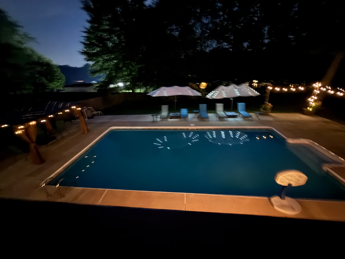 Lux con pileta, patio vallado, fogata, 7 camas, cerca de Battery