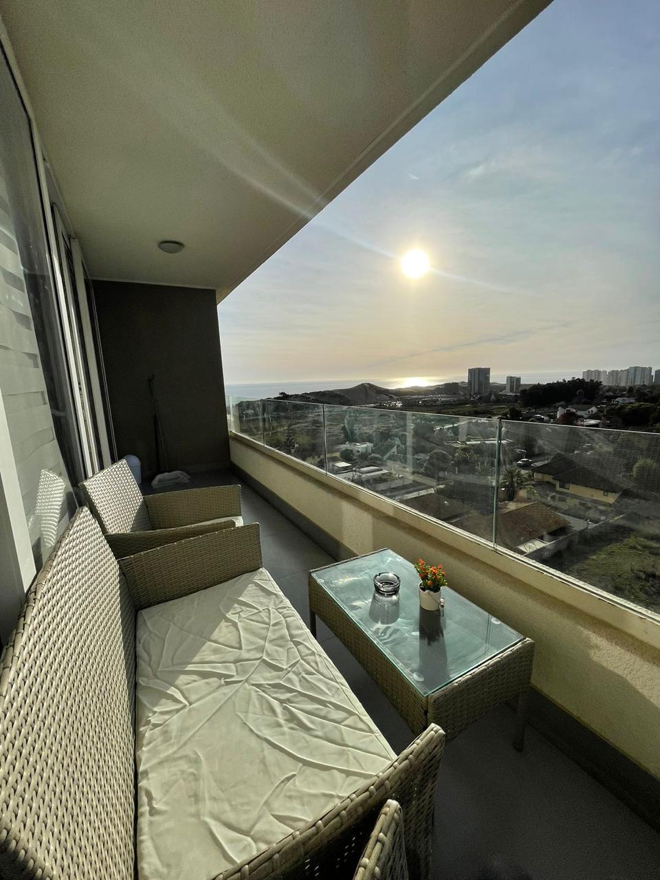 Lindo departamento con terraza vista al mar, un dormitorio un baño, completamente amoblado y equipado. Cuenta con wifi y cable para la tv smart de 42 pulgadas. Excelente iluminación. Edificio cuenta con consejería 24 hrs, 2 piscinas: exterior y temperada, gimnasio, sauna, quincho, lavandería y estacionamiento. Se encuentra cerca de supermercados, bencineras, farmacias. Ubicado a 5 minutos de la playa en auto, y 20 minutos a pie. Se ofrece descuento del 10% a estadías mayores a 7 días.