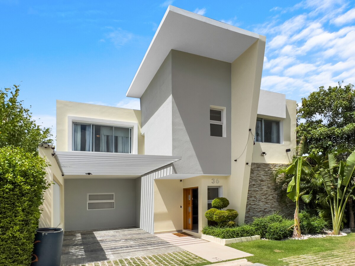 Hermosa villa residencial privada en el centro de Punta Cana, con seguridad las 24 horas, situada a 12 minutos del Aeropuerto Internacional de Punta Cana, a 10 minutos de los centros comerciales (Blue Mall), Punta Cana Village, Coco Bongo y el centro de Punta Cana.a 15-20 minutos de las principales playas (Playa Blanca, Playa Juanito y Playa Macao).