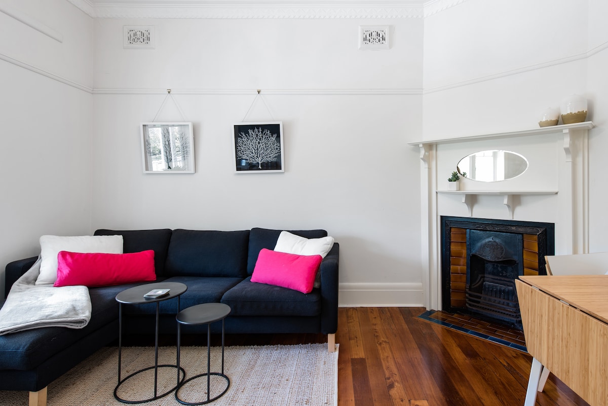 Siéntate en la terraza bañada por el sol de esta acogedora casa de época y disfruta de las vistas panorámicas de Green Park. Todas las habitaciones son espaciosas y cuentan con todo lo esencial para que te sientas como en casa. Como anfitriones con una familia joven, ocupamos parte de la propiedad y compartimos una pared común con la casa de huéspedes. Sin embargo, el AirBnB es privado, tiene entrada independiente y no comparte zonas comunes. Esta casa de huéspedes independiente forma parte de una elegante casa familiar de la federación en una manzana esquinera con su propia entrada privada. Tiene un dormitorio con armario empotrado y escritorio. La sala de estar es una sala de estar/comedor y cocina americana combinadas que conducen a una gran terraza exterior. El espacio es flexible y perfecto para viajeros de negocios, familias jóvenes y parejas que buscan disfrutar de las mejores partes de Sídney. Tenemos un colchón inflable y una cuna, que incluiremos o retiraremos en función de tus necesidades para dormir. ¡Te sentirás como en casa lejos de casa! Los huéspedes tienen un acceso privado separado sin zonas compartidas y acceso directo a Green Park desde la terraza exterior accesible a través de una entrada lateral. Esta propiedad admite el acceso sin llave con tecnología de August Home. Si lo deseas, no hay necesidad de interactuar con los residentes de la casa, el apartamento es tu espacio y es totalmente privado. Al otro lado de la carretera de la casa se encuentra Greens Park, que cuenta con un parque infantil, canchas de tenis públicas y aros de baloncesto. El campo de golf Cammeray también está prácticamente en la puerta, y hay una gran variedad de cafeterías, restaurantes y panaderías cerca. Cammeray es una excelente ubicación con acceso inmediato en todas las direcciones en coche. Hay mucho aparcamiento durante todo el día en la calle justo fuera de nuestro alojamiento. El transporte público es muy fácil en la ciudad, North Sydney y Mosman. Incluso está a poca distancia a pie de North Sydney, Neutral Bay y Crows Nest para trabajar o jugar. La cocina americana está equipada con nevera bar, microondas/horno, 2 placas de inducción, tostadora, jarra y artículos de primera necesidad.