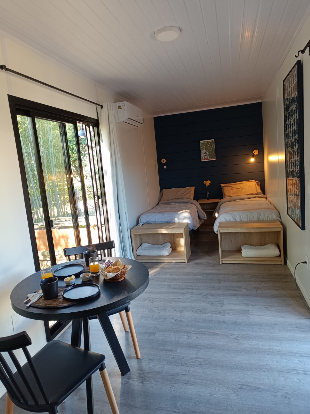 Un espacio único en medio de la nada. En el pueblo de Riachuelo, a solo 12 km de la ciudad de Colonia del Sacramento. 40m² de confort con todo lo necesario para un descanso absoluto en un predio de 5 hectáreas. Playita frente al arroyo donde si quieres puede nadar, pescar y si traes un kayak disfrutar el lugar a pleno. Pesca recreativa. Parrilla. Avistaje de pájaros. Piscina.