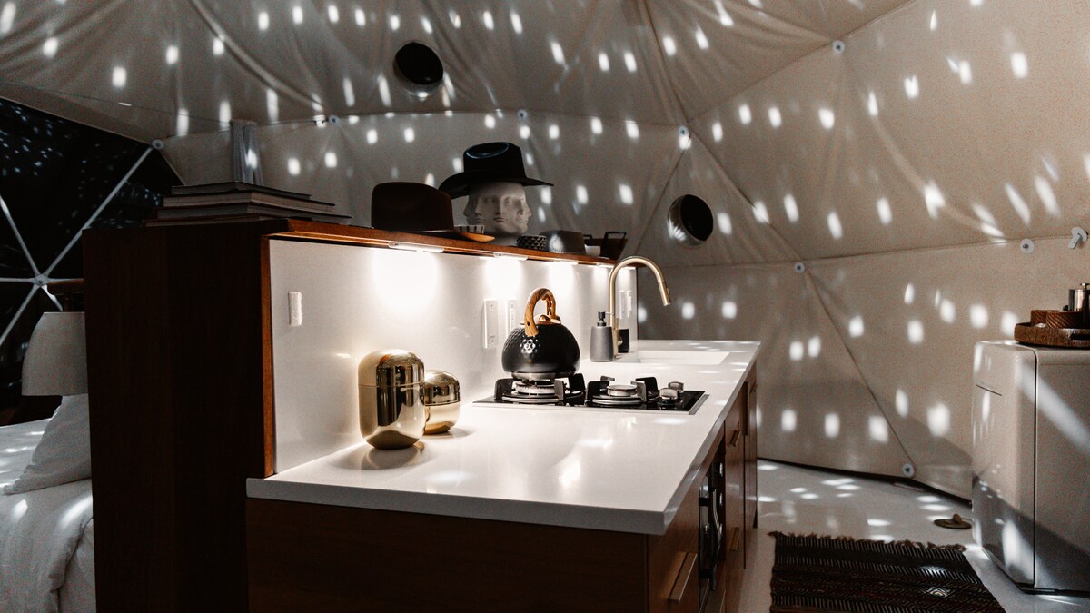 Un alojamiento inspirado en la esencia de Yucatán. Esta lujosa cúpula con discoteca te sumerge en el vibrante espíritu de México con una exuberante vegetación, decoración artesanal y cálidos tonos terracota. Con amplias vistas, interiores de lujo y un espacio exterior privado perfecto para tomar el sol, observar las estrellas y bailar con mezclas de DJ cuidadosamente seleccionadas, la cúpula de México te invita a relajarte, explorar y disfrutar de la belleza de la vida. Reserva tu estancia en The Disco Domes y déjate llevar por el ritmo.