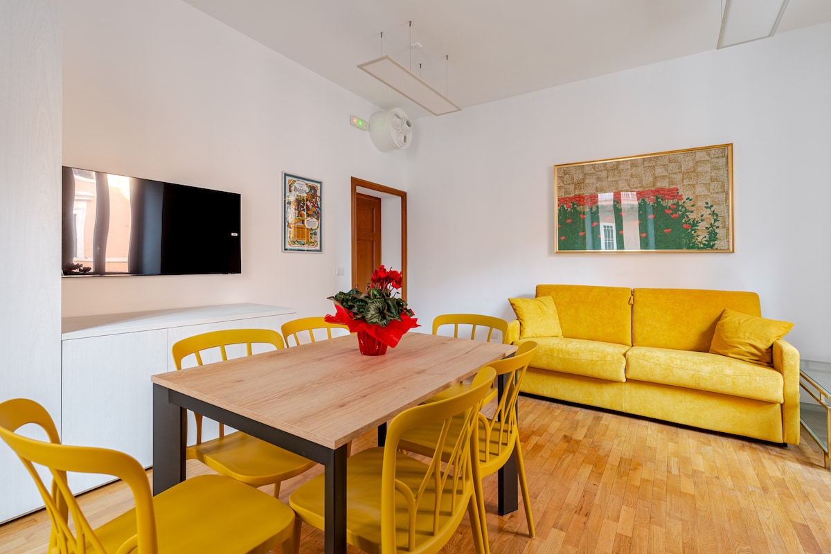 Excelente para trabajar y visitar Roma. El Coliseo está justo al final de la calle, muchos de los monumentos más importantes están cerca, pero lejos del caos. Edificio histórico con ascensor. Ideal para moverse: los colectivos paran justo afuera y las líneas de metro A, B y C están cerca. La estación de Termini está a poca distancia. También es ideal para estadías largas: wifi rápido, conexión LAN, aire acondicionado, calefacción, TV inteligente, lavarropas/secadora y lavavajillas. Supermercado, bar, alquiler de bicicletas, gimnasio, restaurantes, clubes y tiendas cerca
