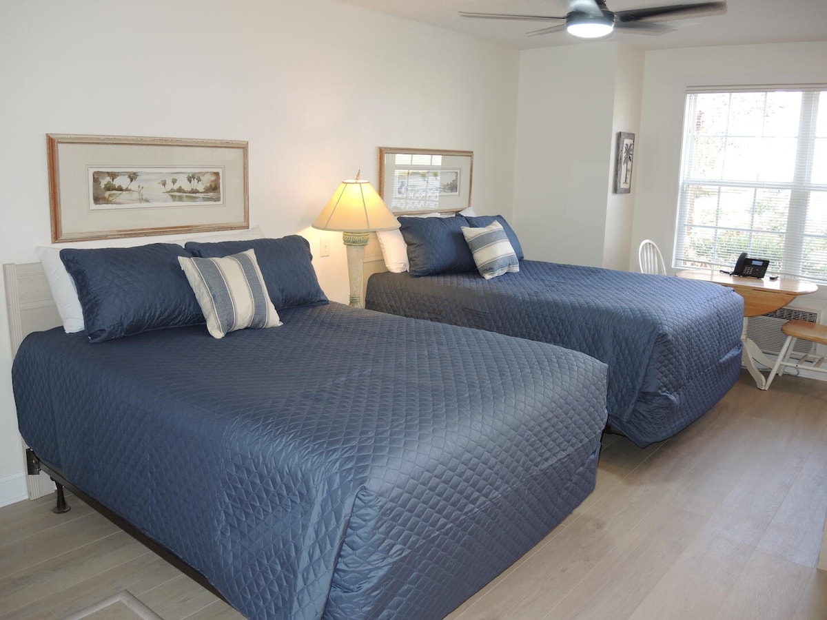 Te damos la bienvenida para compartir nuestros excelentes servicios del centro vacacional en el Property Manager Resort and Golf en la pintoresca comunidad de Calabash, Carolina del Norte. Ofrecemos villas bellamente amuebladas con una variedad de diferentes opciones de ropa de cama con interiores luminosos y espaciosos que están amueblados con buen gusto. ¡Cada unidad ofrece ventiladores de techo, televisores y cafetera para comenzar bien la mañana! Nuestras unidades de Studio Villa pueden alojar hasta 4 en dos camas dobles o queen.