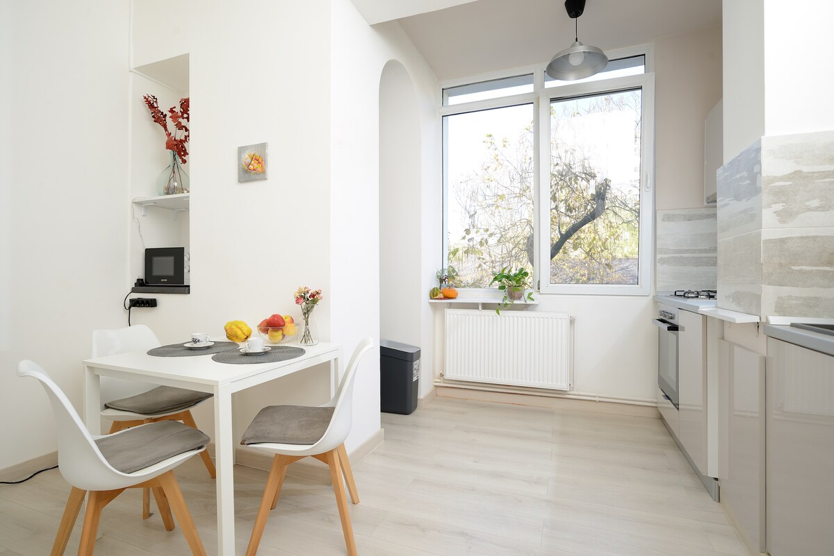 El estudio está situado en el sexto piso de un edificio en Calea Victoriei, uno de los principales bulevares del centro de la ciudad de Bucarest, a pocos pasos del casco antiguo. Este espacio ha sido creado con el deseo de satisfacer todas las necesidades de nuestros huéspedes. ¡Invertimos mucho amor y entusiasmo y hemos trabajado con un diseñador de interiores profesional para que también ames tu 'hogar lejos de casa'! El alojamiento fue totalmente renovado en julio de 2019.