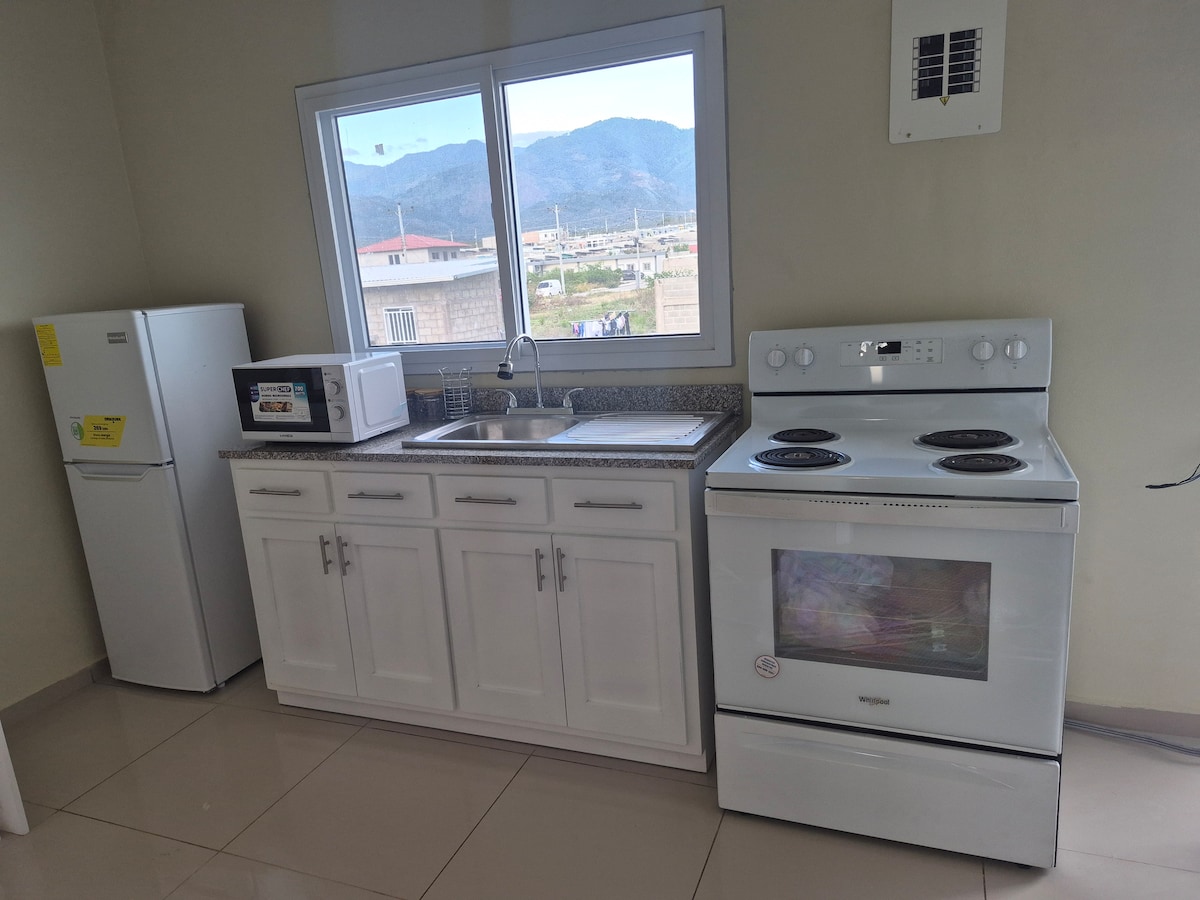 Condominios completamente nuevos, acogedores y modernos. Completamente equipados para tu estadia de negocios, o familiar, cuenta con una cocina equipada, agua caliente, aire acondicionado y ventilador de techos en ambos cuartos, y amenidades de bano. Cuenta con dos recamara que alojan 3 personas y un sofa cama en la sala. Cuarto de Lavanderia y estacionamiento seguro y gratis. Ademas cuenta con un sistema de camara de vigilancia 24/7, cerca electrica y porton automatico.
