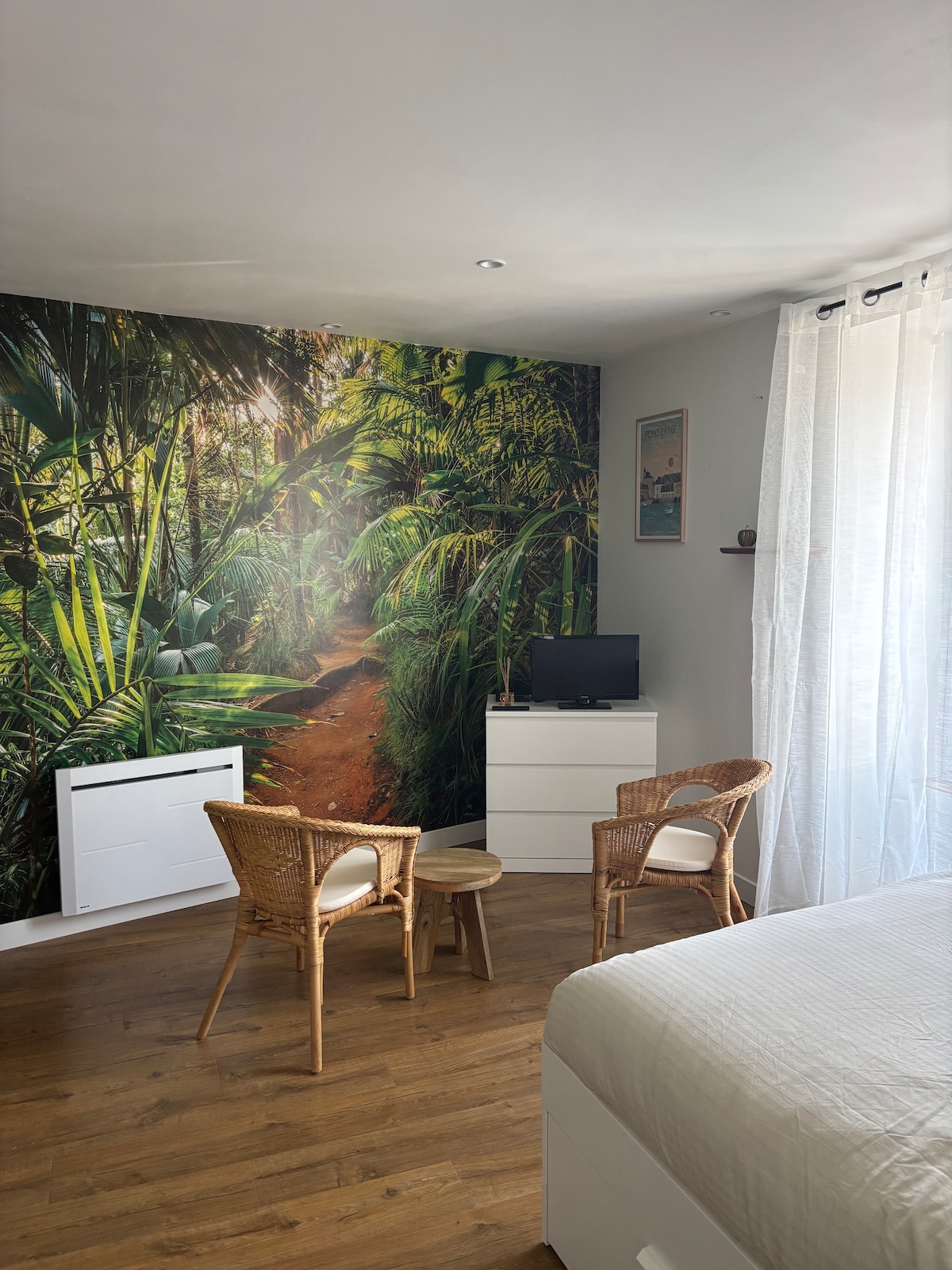 Encantador estudio de 23 m² renovado a 100 m de la playa de Trez. Situado en la 1° planta accesible en ascensor Cocina equipada, horno, microondas, placa de inducción, cafetera, tostadora, hervidor de agua gran vestidor, gran armario cama plegable 140 x 190 sábanas incluidas estudio equipado con wifi, televisor conectado Cuarto de baño separado del inodoro, artículos de tocador proporcionados toallas, alfombra Casino, talasoterapia frente al estudio camino privado, acceso directo a la talasoterapia No hay plaza privada.