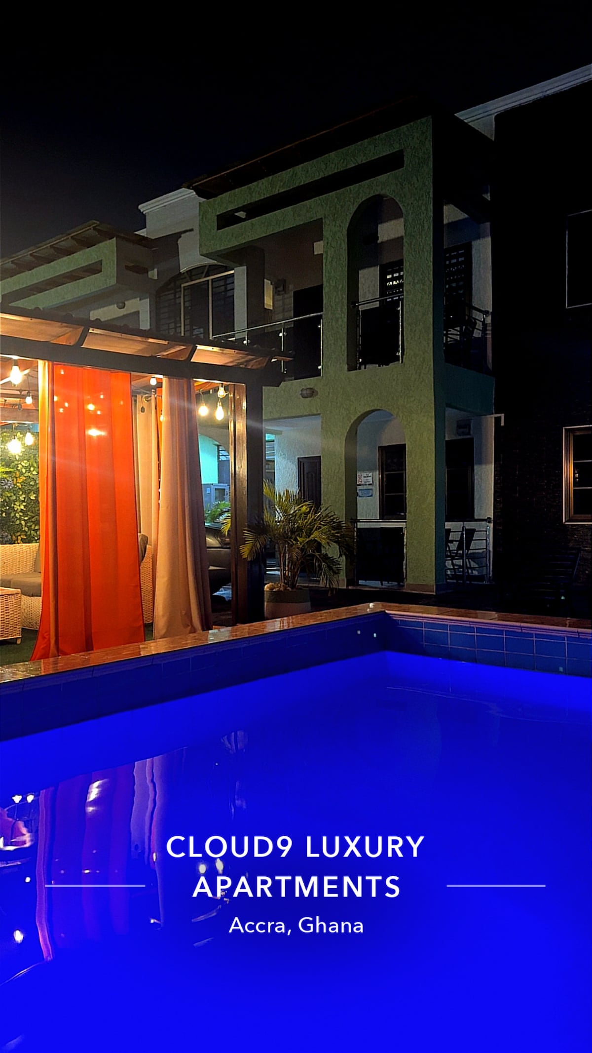 Welcome to your private resort in Accra. Nubian Villa offers a private infinity pool, a 36-jet hot tub with its own bar and hanging chairs, a fully equipped gym, and curated chef services — all within a secure, luxury 4-bedroom residence. Designed for families, executives, and discerning travelers, the villa combines privacy, comfort, and seamless service — including airport pickup and a standby silent generator for uninterrupted power.