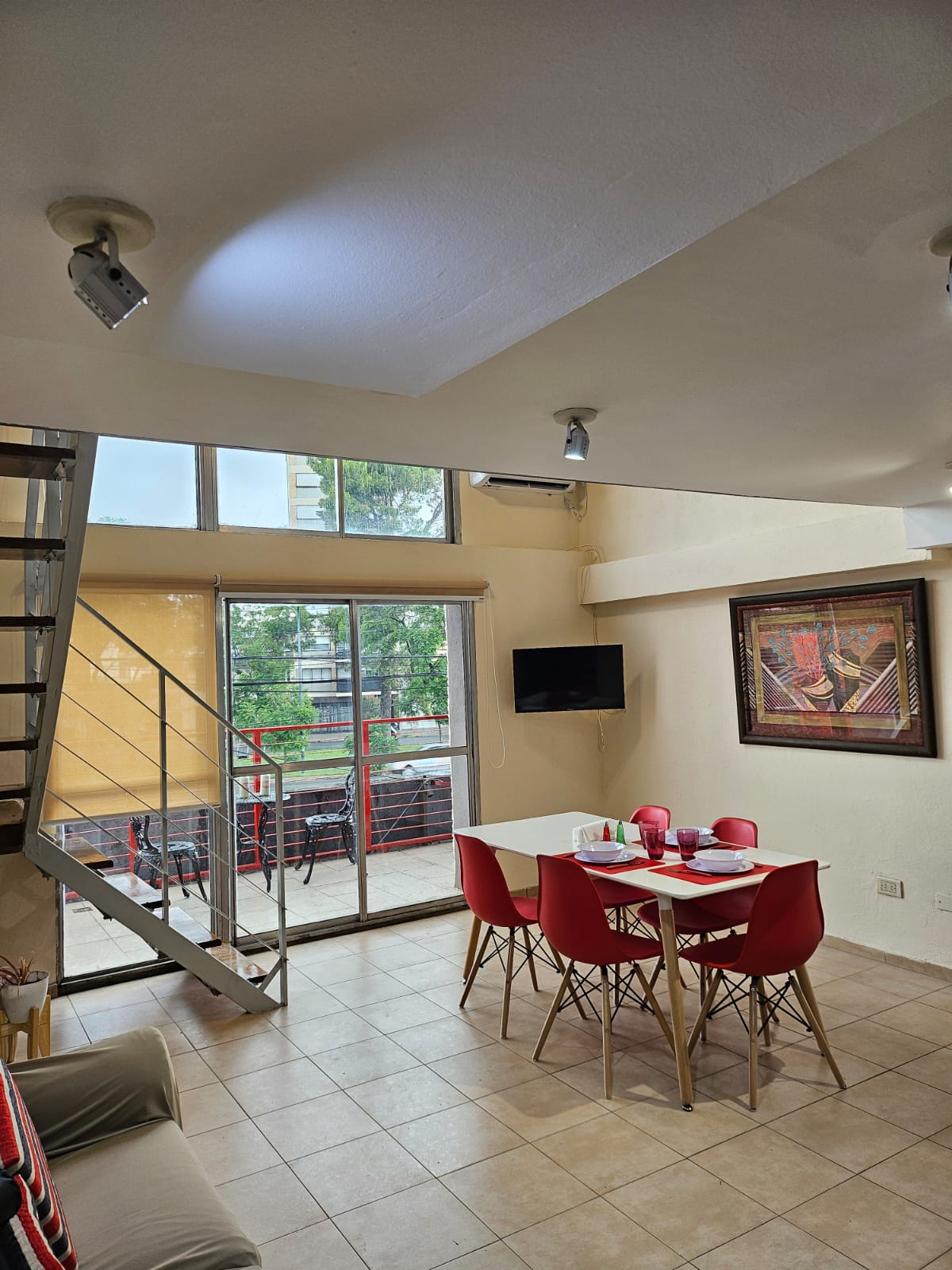 Disfrutá de este moderno loft en el 7º piso con balcón al frente, jardín vertical y barra para relajarte con vistas abiertas a la ciudad. Luminoso y totalmente equipado, cuenta con dos Smart TV (living y dormitorio), placard de pared con cajonera y perchero, cocina completa con lavarropas y WiFi de alta velocidad. Diseñado con estilo y confort, es ideal para estadías de trabajo, parejas o viajeros que buscan una experiencia única en la ciudad.