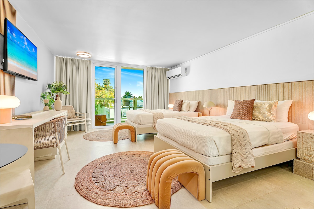 Bienvenido a Romeo Gay Hotel, la escapada más atrevida de San Juan, hecha exclusivamente para la comunidad gay. La habitación Romeo Quad ofrece 2 lujosas camas tamaño queen, un diseño moderno, aire acondicionado, wifi rápido y TV. Ya sea que estés de visita con amigos o con tu pareja, esta elegante habitación es tu plataforma de lanzamiento para explorar lo mejor de San Juan. A solo 15 minutos a pie de la playa de Condado y cerca de bares, clubes y lugares de interés gastronómico. Disfrutá del acceso a una pileta compartida, cocina y recepción las 24 horas, los 7 días de la semana. Sexy, social e inolvidable.