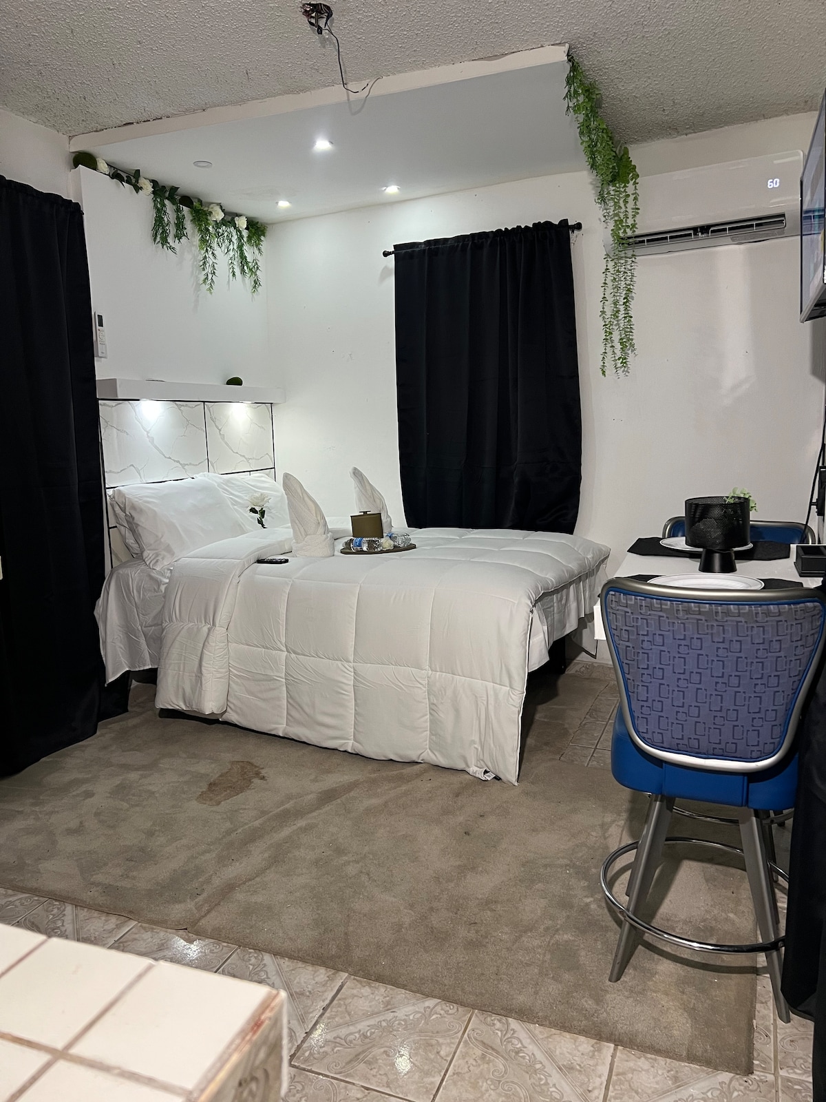Bienvenido a nuestro elegante refugio urbano ubicado en el corazón de San Juan. Esta moderna habitación de hotel está diseñada tanto para la comodidad como para la sofisticación, ofreciendo una mezcla perfecta de diseño contemporáneo y cálida hospitalidad. Nuestra habitación de hotel ofrece un pintoresco telón de fondo que agrega un toque de magia a tu estadía. Experimenta la comodidad con nuestra lujosa ropa de cama, sábanas de alta calidad y muebles cuidadosamente seleccionados. Mantente conectado con wifi de alta velocidad, mira tus programas o películas favoritos en la televisión inteligente