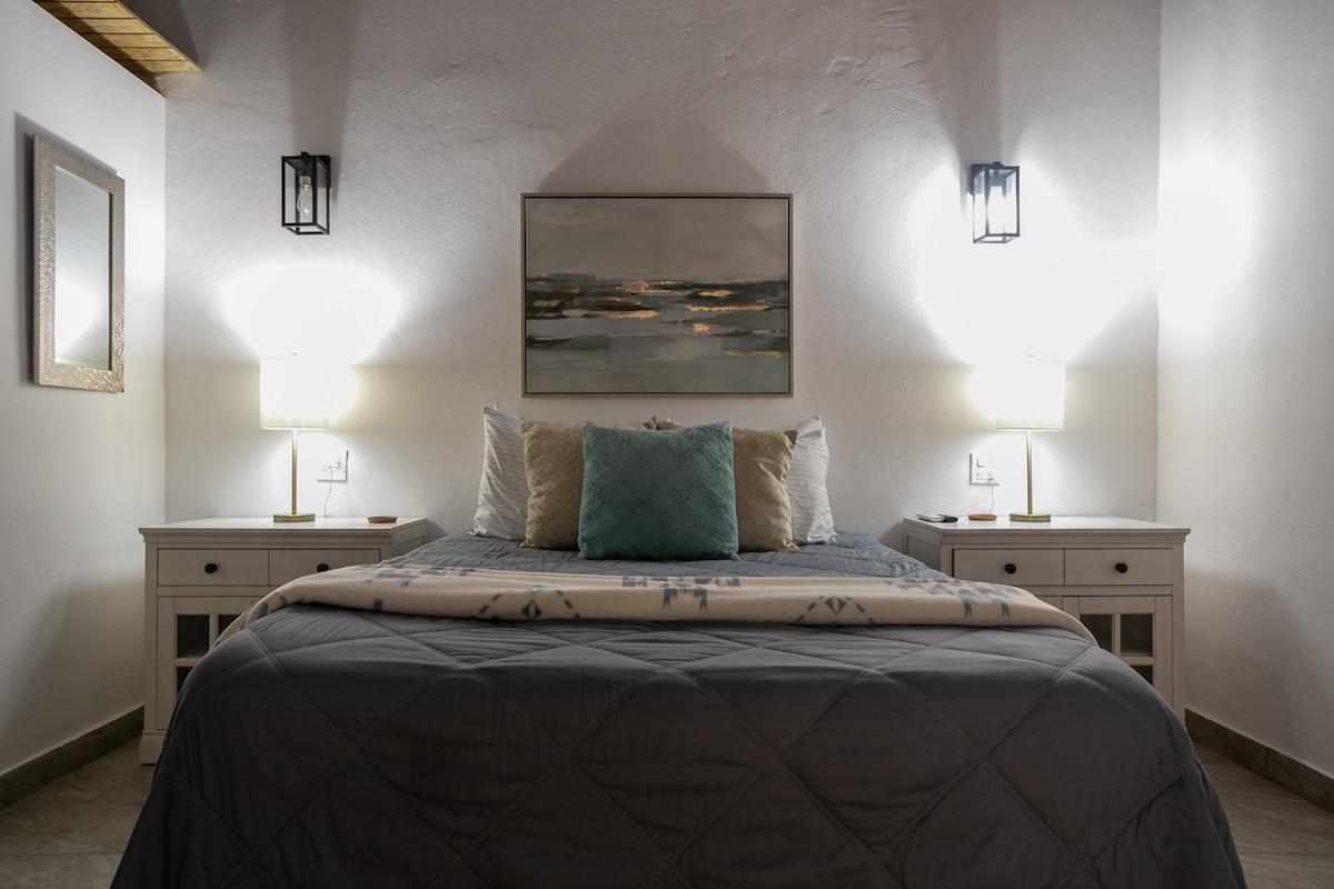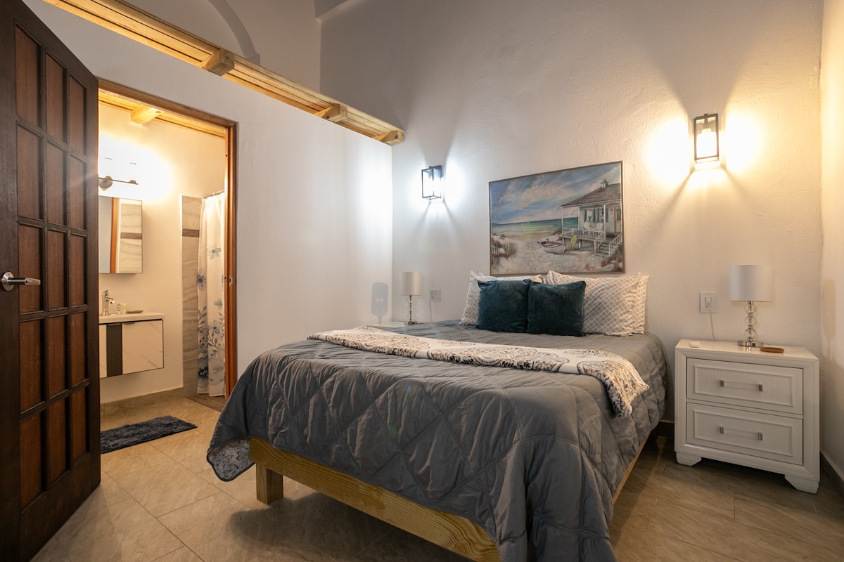 Perfect for King & Queen experience. Vive la vida San Juanera. Enjoy Juliette balcony, king size bed, private bathroom & work space. Conveniently on the premier street, perfect for honeymooners and anyone seeking a nostalgic local experience. You’ll love Paradise Point OSJ, less than 15 mins. from the airport, La Placita, Malls; Walking distance to our port. local beach, all historic sites, popular shops, restaurants, festive plazas and nightlife from this prime location!