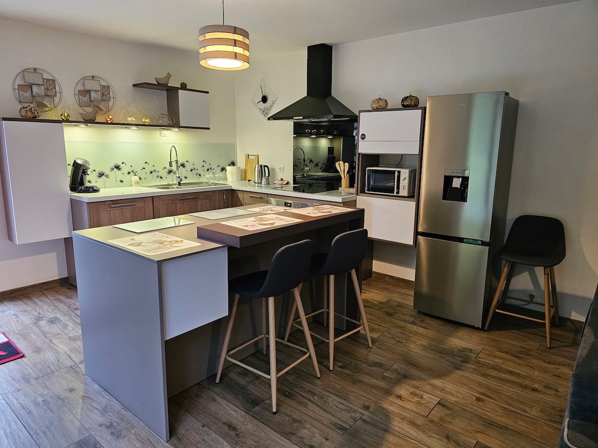 Apartamento nuevo con todas las comodidades idealmente situado en el campo a 2 km de la autopista A16, cerca del mar, a 10 km de Nausicaa (Boulogne sur mer) y de la playa de Hardelot. Lugar ideal para alojarse una noche por motivos de trabajo, un fin de semana en pareja o con amigos, o una o varias semanas en familia. Numerosas actividades posibles como senderismo o ciclismo, golf (3 campos de golf en un radio de 15 km), playa, deportes acuáticos, piscina, arborismo, equitación, etc.