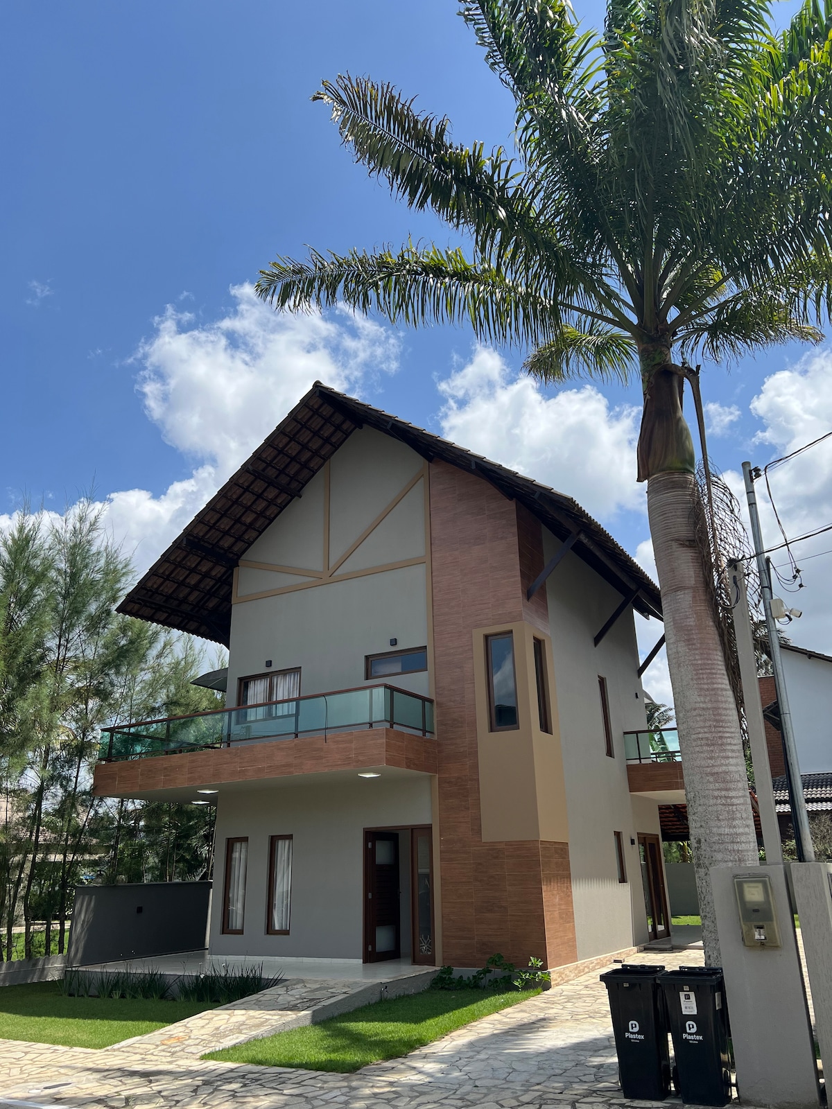 Sou um espaço novo e acolhedor. Com ambientes integrados e uma pracinha charmosa em frente, sou perfeita para famílias com crianças. A cozinha é completa, com freezer, geladeira, micro-ondas forno e airfryer. Possuo quatro suítes climatizadas, sendo: uma com cama king, outra com cama queen e duas com camas de solteiro que podem formar uma de casal. Todas as suítes têm armadores de rede. Sou um lar que une funcionalidade, aconchego e praticidade para tornar sua estadia inesquecível.