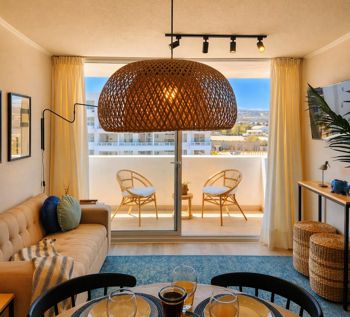 🌊✨ Moderno departamento a pasos del faro y la playa. Ideal para parejas o viajeros que buscan estilo y comodidad. Departamento de 1 dormitorio, 1 baño, cocina equipada, amplio balcón y acceso a piscina y áreas verdes dentro del condominio. Cercano a todo: playa, supermercados, terminal y más. Está en un cuarto piso sin ascensor. ¡Perfecto para desconectar, disfrutar del mar y vivir una experiencia única! Reserva ya y asegura tu escape costero. 🏖️