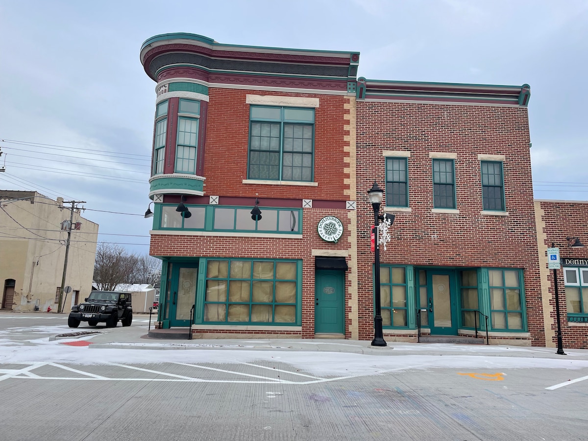 Your family will be close to everything when you stay at Aire Leclaire! Within walking distance from downtown and 2 blocks from American Pickers. This modern 2 bedroom, 1 bath home is a block away from the tugfest parade route. A barnyard turned farmhouse in the 1940’s, this home completely remodeled with the modern farm charm it has today. In town for a day or several, enjoy outdoor amenities, a lighted deck, outdoor couch, and table. Inside, a modern LED fireplace mixed with rustic beauty.