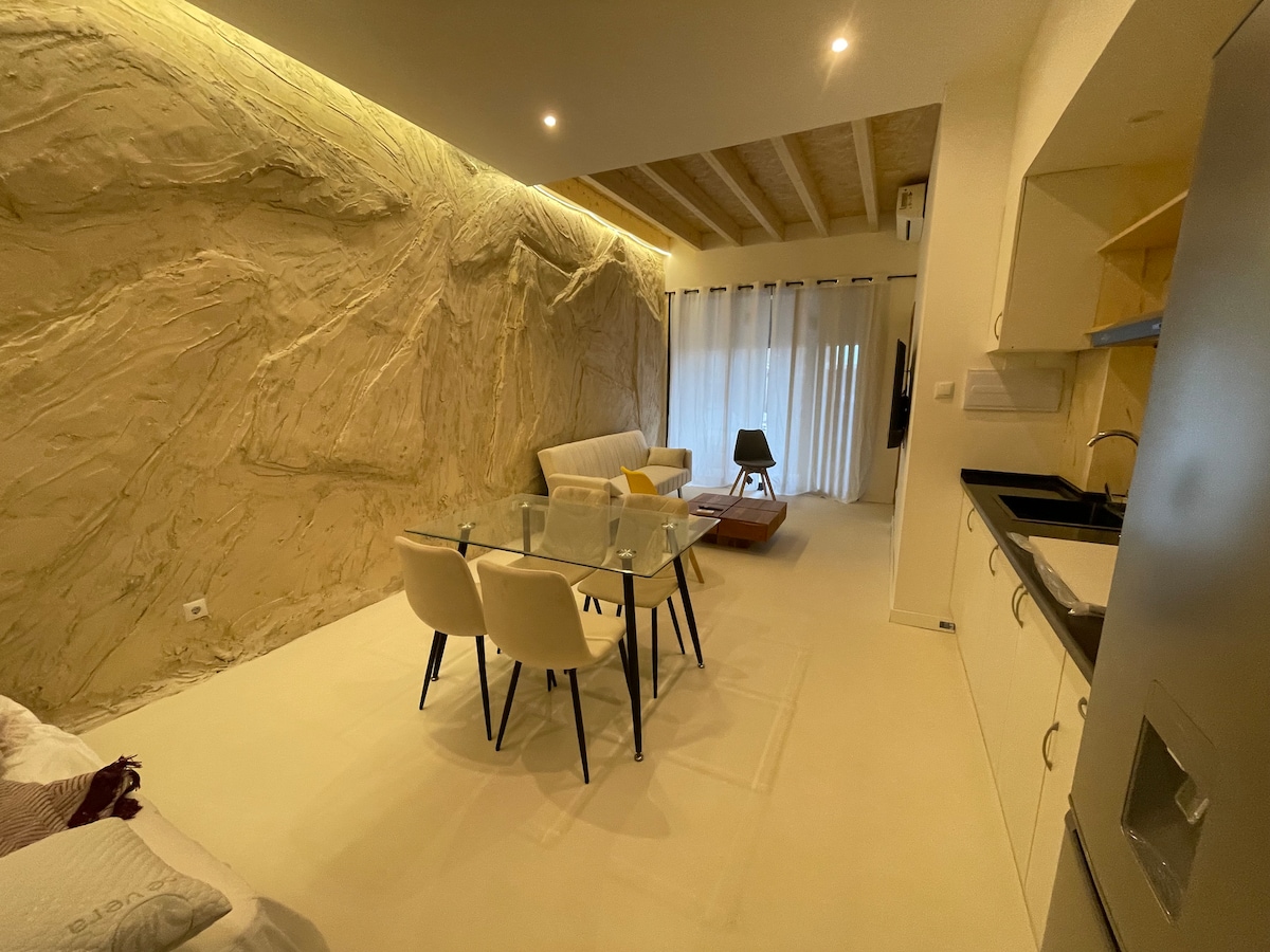 El estudio dispone de 28, cuenta con una cocina-sala de estar y habitaciòn todo unido y un cuarto de baño y una pequeña zona de vestidor, entreplanta , esta totalmente reformado, y es ideal para pasar varios días ya que disponéis de todas las comodidades (tostadora, sartenes, neceseres para cocinar, lavadora, secadora, secador pelo, plancha). Posibilidad de parking para el auto a 300 metros en parking vigilado publico. Es un entresuelo por lo que la luz natural y vistas, no es su fuerte.