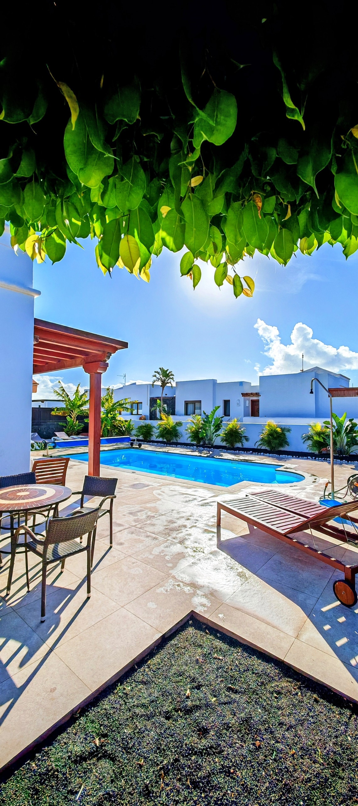 Te damos la bienvenida a la casa de vacaciones Casa Palmera en Playa Blanca, en la mejor ubicación para la Marina Rubicon, las playas Flamingo Beach, Dorada Beach y la famosa Playa Papagayo. Una casa de vacaciones tranquila, recientemente renovada y bellamente amueblada, con 2 dormitorios y una pileta privada rodeada de palmeras y con vistas perfectas a las montañas y al mar. Hermosas áreas de estar junto a la pileta y en la terraza de la azotea, así como una cancha de tenis y pádel garantizan unas vacaciones perfectas bajo el sol.