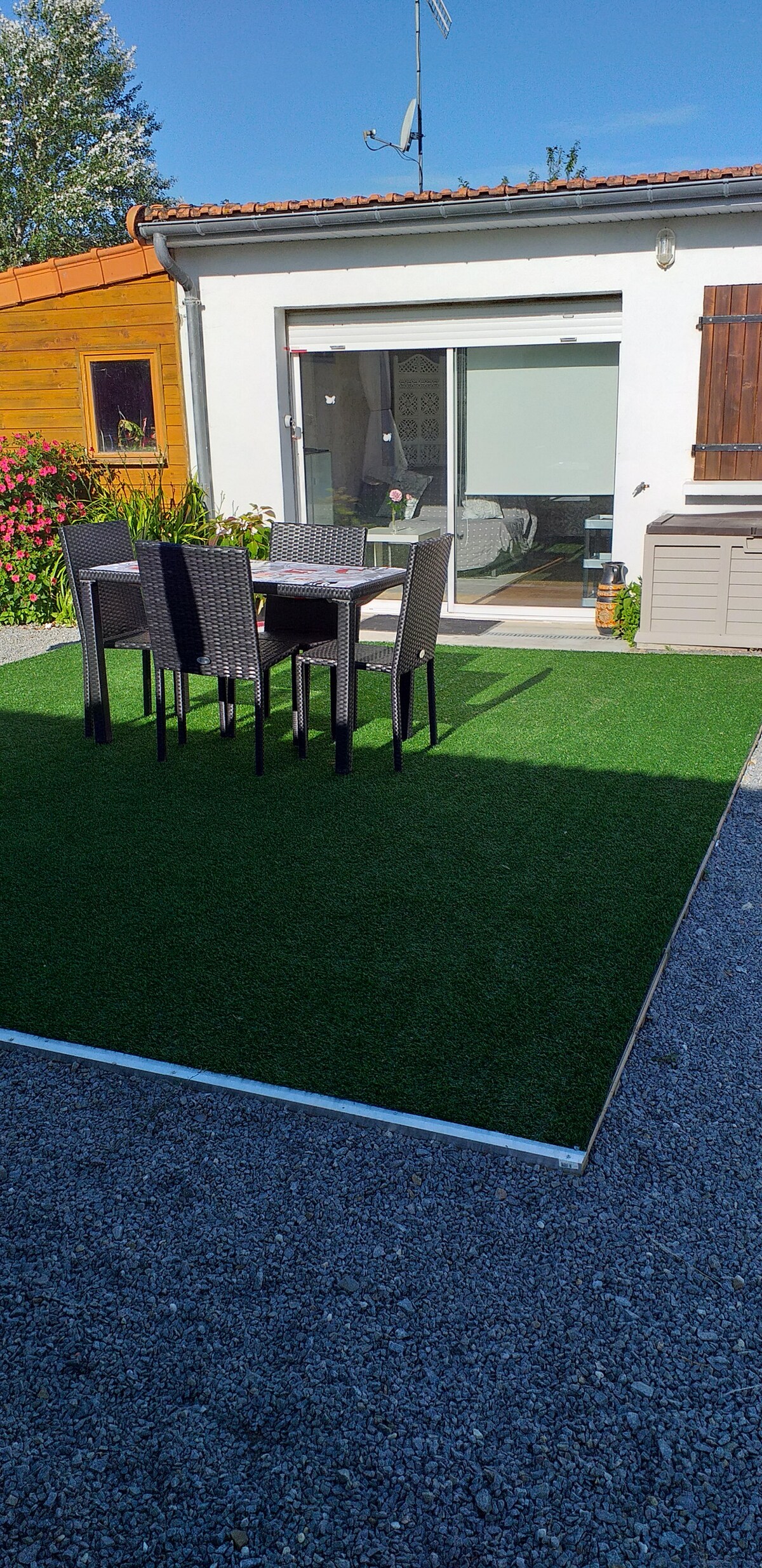 A 500 metros de las murallas de Guérande, en un entorno verde, esta nueva casa independiente le ofrece todas las comodidades modernas (cama doble de 180 cm, lavadora, lavavajillas...) Podrá cocinar las especialidades locales yendo al mercado de Guérande. Plaza de estacionamiento disponible, Ropa de cama, toallas y ropa de hogar incluidas (cama hecha) Llegada a partir de las 16:00 y salida antes de las 10:00 (horarios flexibles sujetos a disponibilidad)