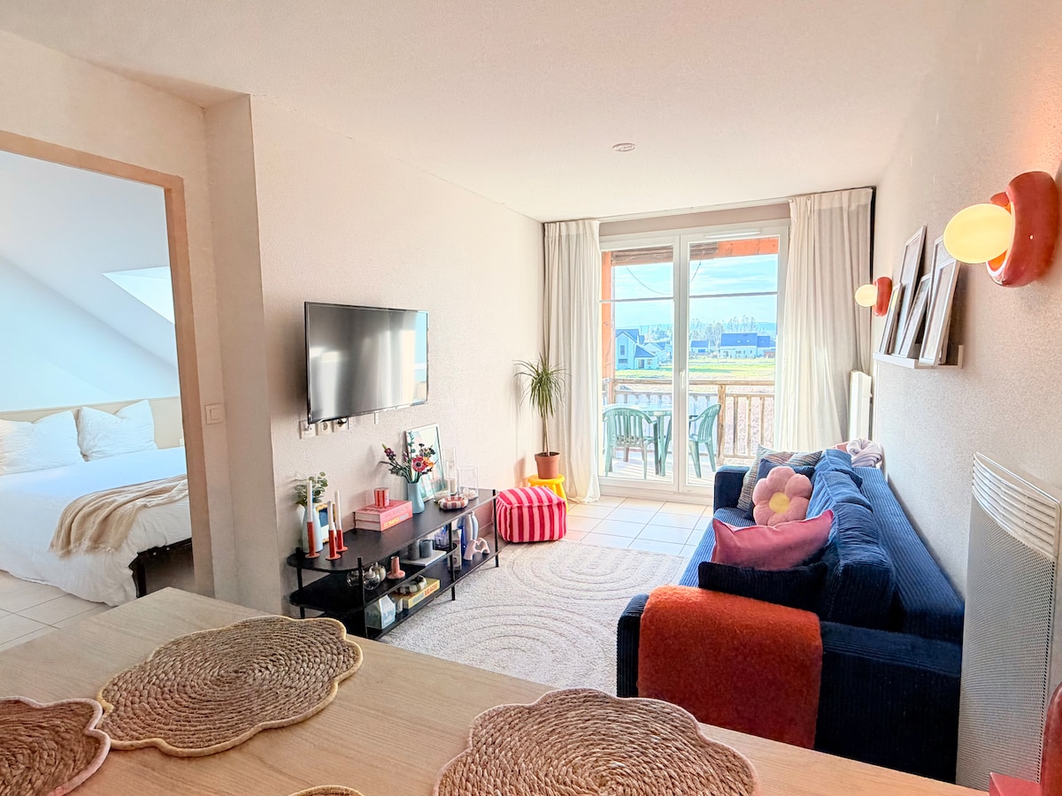 Amplio estudio luminoso, tranquilo y sereno de 30 m2 + patio cubierto de 9 m2. Cerca de la autopista A39 salida N° 5/Soiran y luego Tréclun a 3 km. Estudio en el campo en la propiedad de 1600 m² vallada (paredes), acceso al código digital, estacionamiento privado, zonas verdes y floridas. Desde el estudio, acceso directo a pie a un patio privado de 9 m² para comer, o simplemente relajación, lectura y relajación. Tiendas de alimentos y restaurantes a 5 km Posibilidad (bajo petición gratuita) cuna.