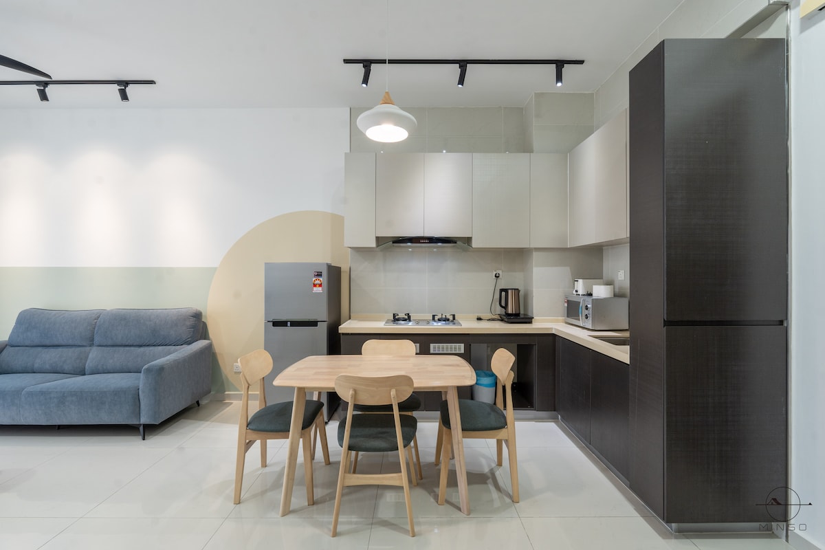 (1+1 dormitorios y 1 baño) Apartamento contemporáneo, moderno y acogedor en el corazón del centro de la ciudad de JB. Adecuado para familias de 4 personas, amigos y grupos de negocios. **A 5 minutos de CIQ, City Square, KSL, Pelangi y Larkin **A 8 minutos de Mid Valley Southkey, Larkin Sentral y Sentosa **A 15 minutos en coche del centro comercial Paradigm, Sutera, Skudai y Mount Austin Televisor inteligente✔ 4K. Wifi de✔ alta velocidad y mesas de trabajo con enchufe de extensión. ✔ Lavadora ✔ Aire acondicionado en todas las habitaciones. Consola ✔ Atari, Mahjong y juegos de mesa. ✔ Aparcamiento GRATUITO para 1 coche.