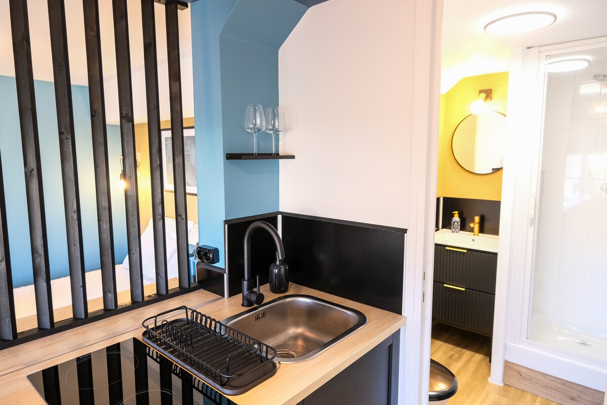 En el corazón de Saint-Lô, a orillas del Vire y frente a la estación de tren, nuestro apartamento de 35 m² totalmente renovado le seducirá por su luminosidad y comodidad. Con una ubicación ideal, se encuentra a 200 metros de la estación de tren, al lado de la playa Verte, a 5 minutos a pie de las tiendas y restaurantes, y a 8 minutos del ayuntamiento y la plaza del mercado. Es perfecto para personas que viajan solas, en pareja o viajeros de negocios. Este alojamiento es transitable, verá las murallas en el lado de la cocina y el Vire en el lado de la logia.