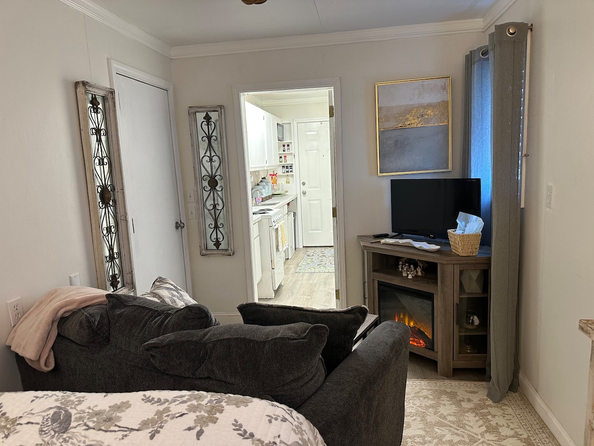 Enjoy a 1,500 sqft modern cabin-style home with peaceful pine views. This 3BR/2BA retreat features a stocked kitchen, fast Wi-Fi, central AC, balcony, and laundry. Located in Collins, MS, in Pine Hills RV Park—just a 5-min walk to Grand Paradise Waterpark. Perfect for families or work crews, the home offers easy parking in front and elevated, wooded acreage in back. Modern comfort meets nature!