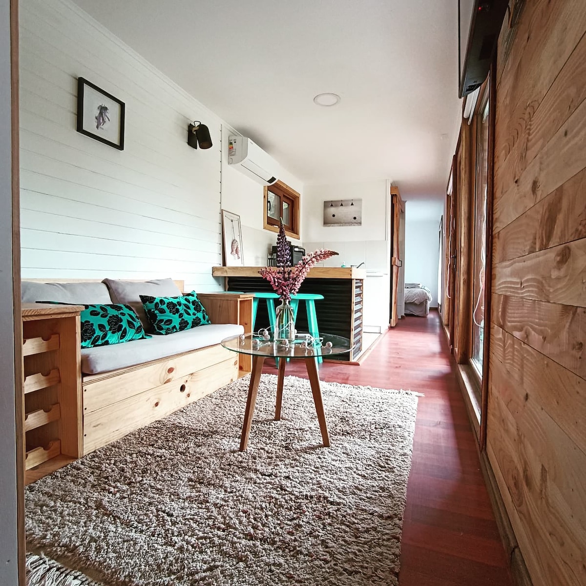 A solo 10 kms de Coyhaique conecta con la naturaleza en esta escapada inolvidable. Nuestra tiny house se encuentra en nuestro campo, un lugar privado y silencioso, donde podrás tener acceso al río, a senderos, a la patagonia en vivo !! Somos pequeños productores de lana de ovejas, lo cual hace que vivas la experiencia de alojarte en un rancho de la Patagonia, una experiencia única. Además servicios con costos extras de tinaja caliente desde agosto a mayo y viajes de pesca con mosca en temporada
