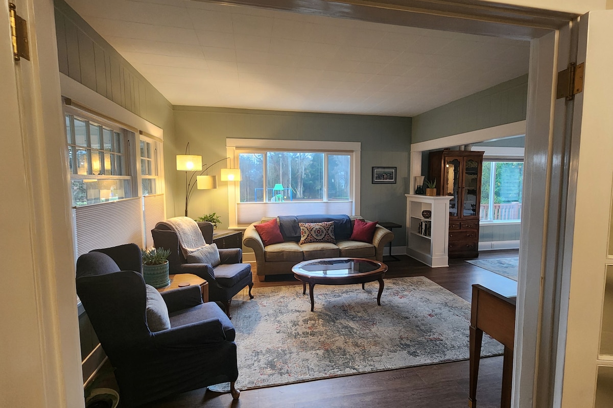 Relájate y desconecta en este alojamiento tranquilo y elegante. Nuestro acogedor refugio ofrece lo mejor de ambos mundos: un entorno tranquilo rodeado de árboles y vistas impresionantes del río Columbia, pero a solo unos pasos de las tiendas y restaurantes del centro de la ciudad. Camina hasta el sendero Cathedral Tree Trail y la columna de Astoria. En el interior, disfruta de una lujosa cama con sábanas de primera calidad, suelos de baño con calefacción y un patio perfecto para tomar café mientras los barcos se deslizan. Experimenta la relajación y la comodidad en nuestro escondite bien equipado.