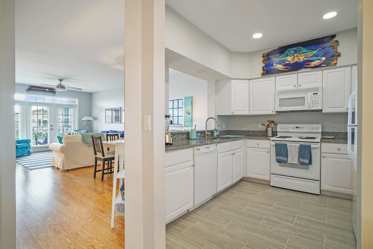 Apartamento de 1 dormitorio recién remodelado con cama tamaño king, sofá cama tamaño queen, televisores de 55 pulgadas en la sala de estar y el dormitorio. Escaleras a la unidad del tercer piso con patio privado. Cocina totalmente equipada, lavavajillas, lavadora/secadora, wifi, TV por cable, casa club, gimnasio, canchas de tenis, 2 piscinas (1 climatizada), canchas de tejo, zona de picnic con parrillas y pasarela privada a la playa. Se admiten perros (SOLO 1 PERRO) con una tarifa de mascotas de 100 USD que se debe pagar en el momento del registro. Debe ser capaz de subir escaleras. Apartamento en un tercer piso.
