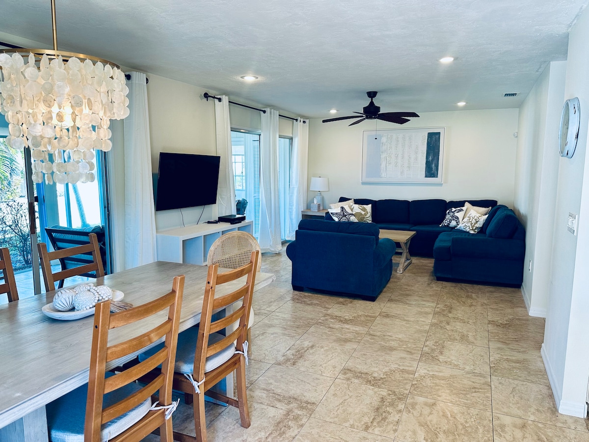 Disfruta de un fácil acceso a todo desde este refugio costero céntrico y actualizado Villa de 2 dormitorios y 2 baños de 1253 pies cuadrados con garaje adjunto, lavadora/secadora Playa privada y tumbonas gratuitas 2 piscinas Capacidad para 7 personas: cama tamaño king en master y queen/twin en el dormitorio y sofá cama en la sala de estar Ningún coche necesitaba un coche ideal para familias o parejas WiFi y espacio de trabajo de lg CAMINA 1/4 m hasta restaurantes, tiendas de comestibles, licores, café y helado. Siesta Beach #1 en EE. UU. Superanfitrión: más de 325 evaluaciones con un promedio de CINCO ESTRELLAS*