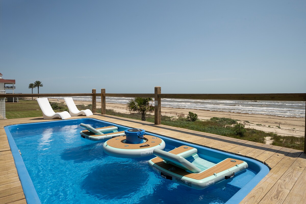 Discover the evolution of beachfront luxury at "Noisy Waves" by Bolivar Vacations, a coastal paradise now elevated with a one-of-a-kind outdoor adventure park. This isn’t just a getaway; it’s a front-row seat to the Gulf, where serene coastal living meets thrilling entertainment for the ultimate family retreat or group escape. Imagine waking to the rhythmic pulse of the Gulf, stepping directly from your door onto the sand, and spending your days in a private playground designed for all ages.