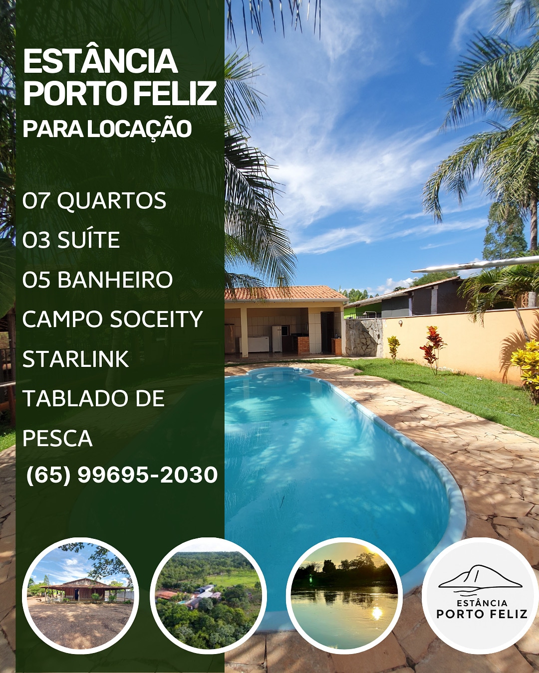 Maravillosa granja, con 4 suites , excelente para la observación de aves, frente al río, con piscina, barbacoa, jacuzzi, internet, wifi, aire acondicionado en todos los dormitorios, sábanas de cama y baño, una casa con aproximadamente 900 m2, con capacidad para 10 personas. A 32 km de la ciudad de Chapada dos Guimarães.