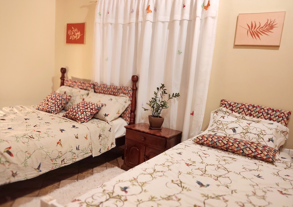 🌿🏡 Casa de campo completa, con 3 dormitorios, amplio patio arbolado de 1.200m2, balcón con hamacas, garaje cubierto, internet de fibra de 300mb y zona de trabajo. Proporcionamos ropa de cama, mesa y baño. Una cocina completa equipada con varios electrodomésticos. Cerca del mercado, farmacia y espacios culturales, además de senderos de bosque nativo y cascadas muy cercanas. Alojamiento tranquilo y seguro para ti, tus amigos y familiares. ✅️ OFERTA ESPECIAL EN LA SEGUNDA NOCHE.