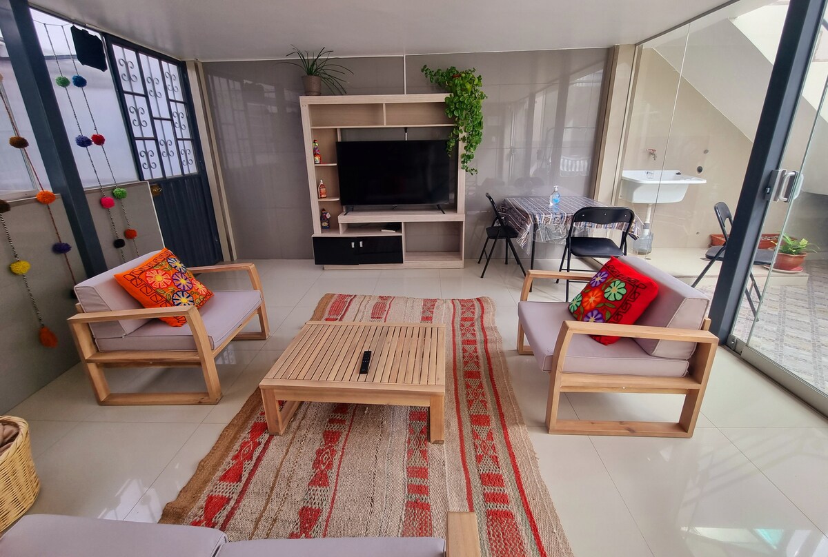 Descubran el estilo vibrante y encanto en esta casa única. Con mucho espacio interior y exterior, áreas comunes divertidas y espacios especiales como un solárium lleno de plantas con una silla colgante, es ideal para aquellos que valoran comodidad y un ambiente cool. Además, podemos organizar todos sus tours, como Machu Picchu, caminatas y experiencias culturales, a través de nuestra empresa, Nativa Expeditions.